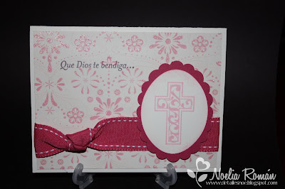 …lo que tú quieras. Me quedé con el deseo de hacer una Postal de Pascua. Estaba bien deseosa de utilizar nuestro sello Bendiciones Especiales e Invitación Formal, pero por falta de tiempo; no me había sido posible. Al salir de misa ayer, me sentí tan enamorada de Jesucristo, y tan llena de paz que quise hacer algo que reflejara ese sentimiento tan sublime que es el amor de Jesús. Así que este hermosísimo papel “Sending Love Speciality Paper” me inspiró a hacer esta sencilla pero bella tarjeta cuando llegué de mi trabajo en la noche. Bien podrías ajustarla para una invitación de bautizo, ya que el Sello Invitación Formal provee para eso; “para invitar”.
