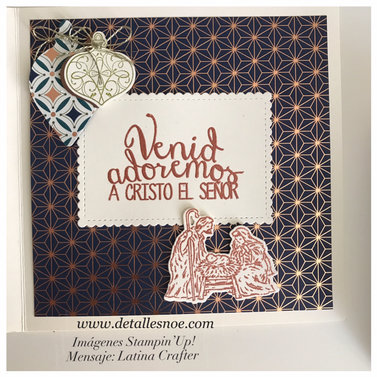 Las Bolas navideñas son del Christmas Gleaming Variety Bundle y el nacimiento es el Peaceful Nativity Bundle ambos de Stampin’Up!, los cuales puedes conseguir en mi tienda virtual aquí.